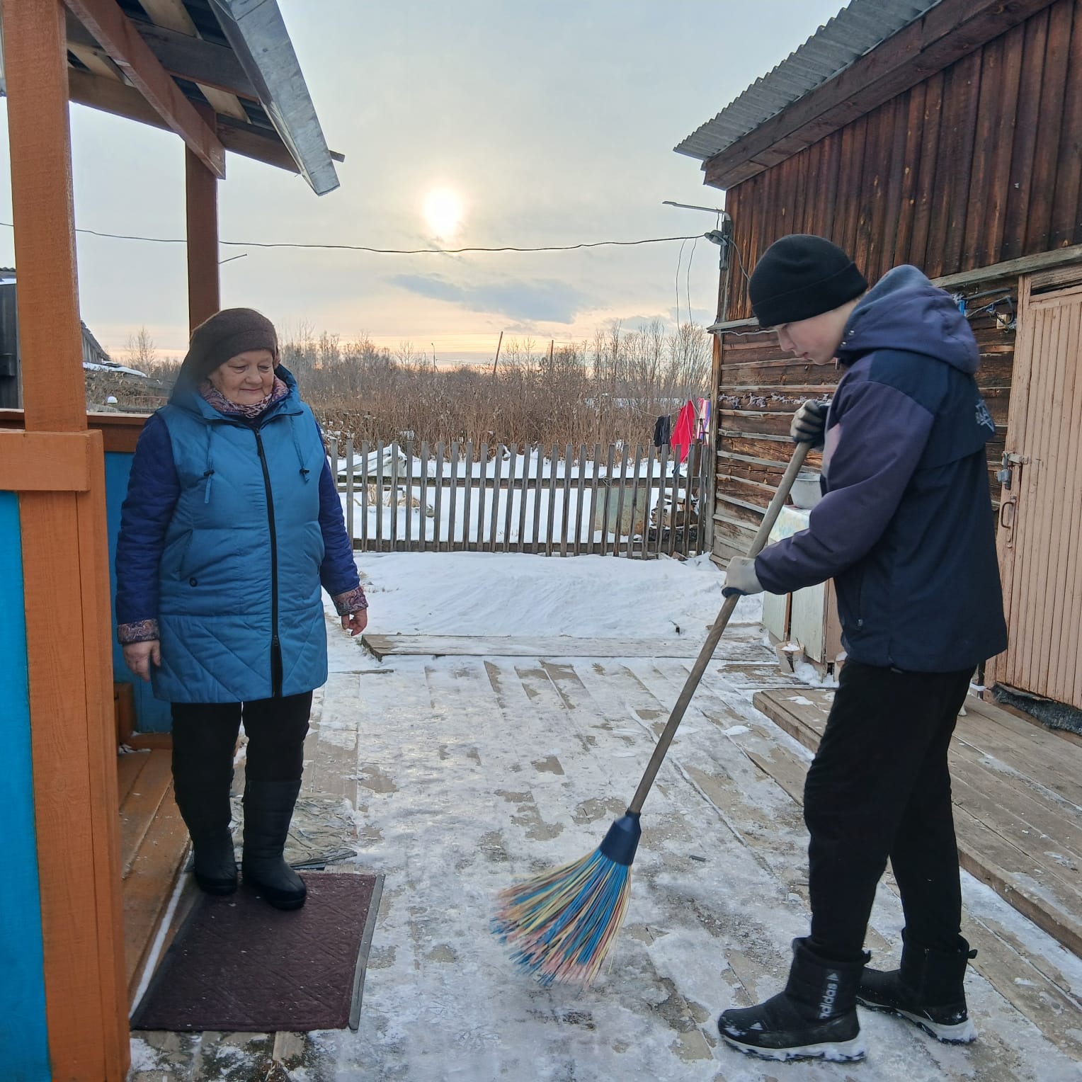 В рамках марафона социальной помощи «Zабота» специалист Управления социальной защиты и социального обслуживания населения по Тайшетскому муниципальному округу совместно с волонтёрами Мирнинской средней общеобразовательной школы провели субботник по оказанию благотворительной помощи семьям участников СВО, проживающим на отдалённой северной территории.