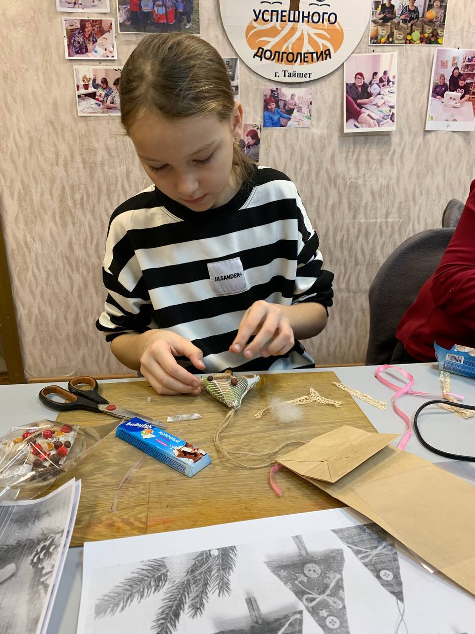 Волонтёры «серебряного» возраста из Академии успешного долголетия при Управлении социальной защиты и социального обслуживания населения по Тайшетскому муниципальному округу подарили детям бойцов, находящихся в зоне специальной военной операции, настоящий праздник творчества и тепла.