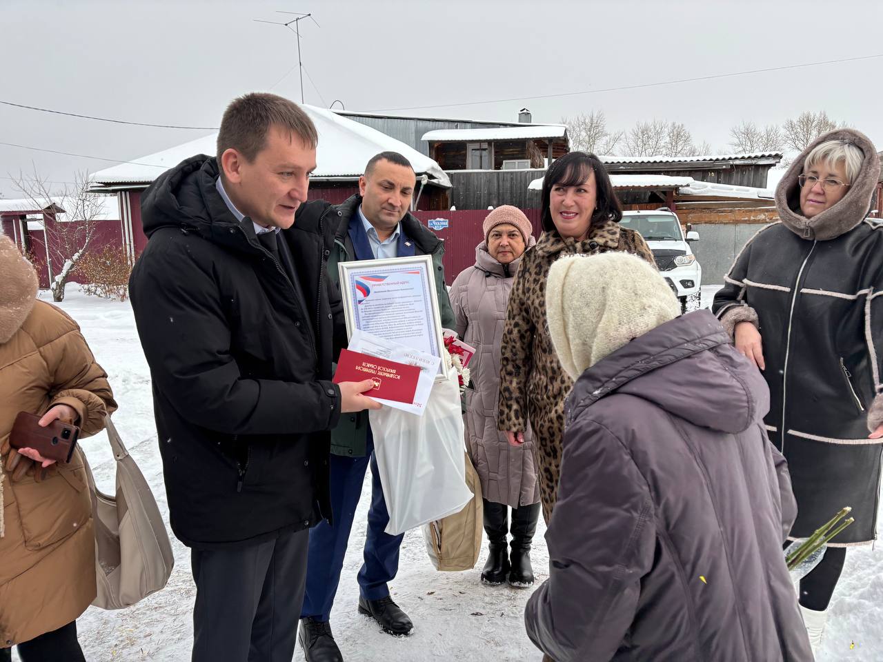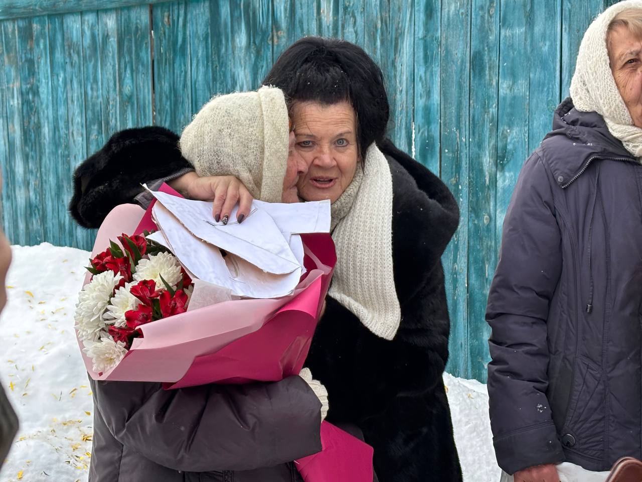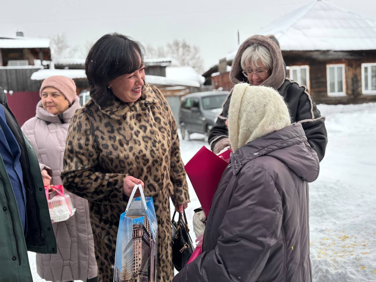 Первый заместитель главы Тайшетского городского поселения Леоненко Руслан Олегович, заместитель мэра Тайшетского муниципального округа по социальным вопросам Никулин Вячеслав Владимирович, директор Управления социальной защиты и социального обслуживания населения по Тайшетскому муниципальному округу Береснева Светлана Владимировна совместно с представителями городского Совета ветеранов побывали в гостях у именинницы. Они поздравили Валентину Никитичну с Юбилеем, пожелали ей крепкого здоровья, благополучия и хорошего настроения. Юбиляру вручили персональное поздравление Президента Российской Федерации, поздравительный адрес от Губернатора Иркутской области Игоря Ивановича Кобзева и подарки от гостей.