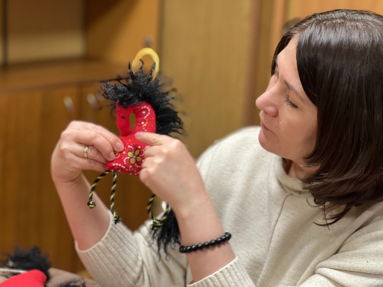 В завершение Декады инвалидов в отделе полустационарного социального обслуживания №1 Управления социальной защиты и социального обслуживания населения по Тайшетскому муниципальному округу свершилось настоящее чудо, созданное своими руками. Ребята старшего возраста на мастер-классе под руководством специалиста по комплексной реабилитации Королёвой Елены Александровны расписывали тканевых лошадок в стиле хохлома. Ребята трудились усердно и кропотливо, чтобы получились авторские, необычные работы! Лошадки, как символ Нового 2026 года, получились яркими и необычными, украсив собой большую ёлку в холле учреждения. Пусть они принесут удачу и счастье в каждую семью!
