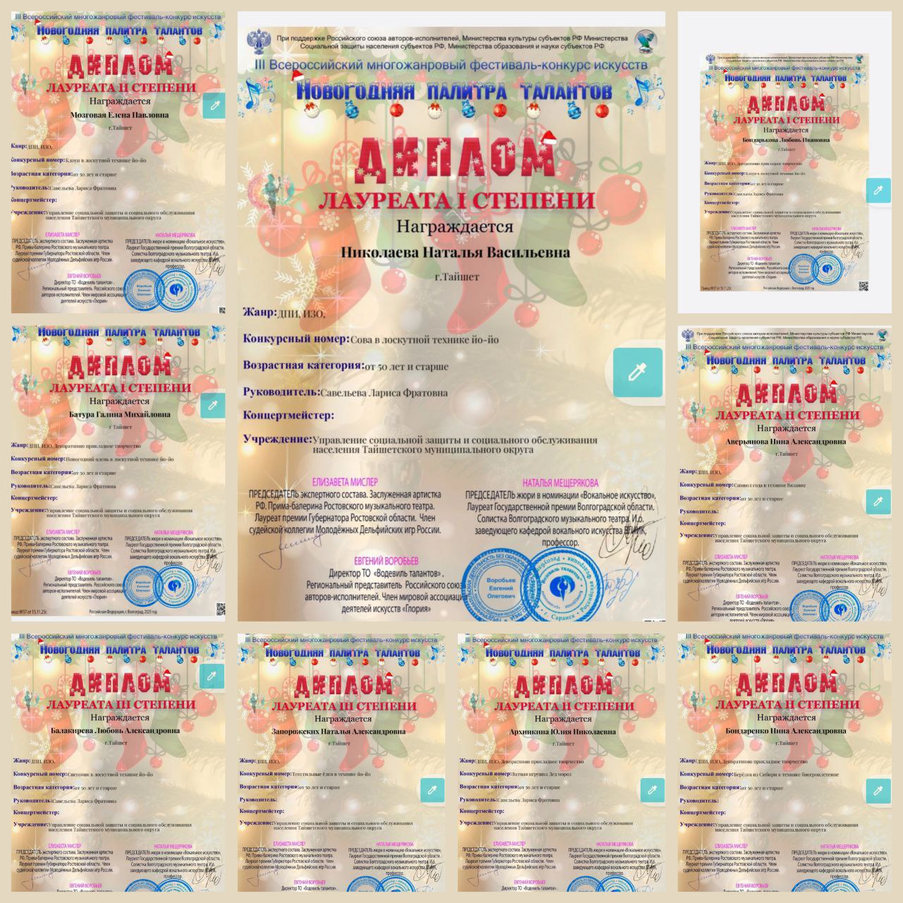 Наши получатели социальных услуг при Управлении социальной защиты и социального обслуживания населения по Тайшетскому муниципальному округу приняли участие в III Всероссийском многожанровом конкурсе-фестивале «Новогодняя палитра талантов».
