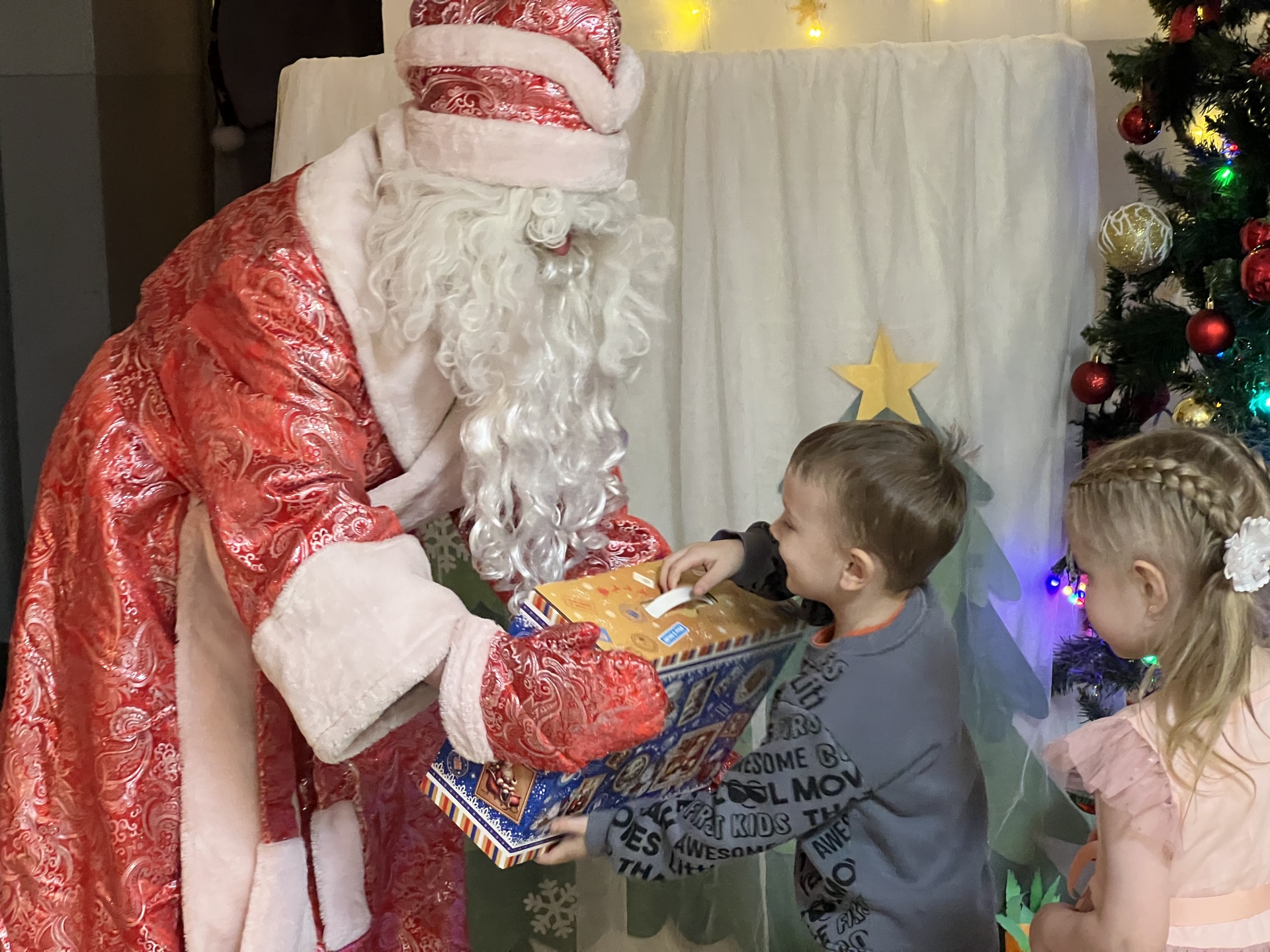 В преддверии новогодних праздников в ОГБУ «УСЗСОН по Тайшетскому муниципальному округу» в отделении полустационарного социального обслуживания №1 продолжаются утренники для детей, получающих социальные услуги. Мероприятия организованы с учётом возраста участников, чтобы каждый ребёнок мог насладиться праздником. Для детей подготовили программу с костюмированными представлениями, играми, хороводами и песнями. Участники могли пообщаться и сфотографироваться со сказочными персонажами, а в завершение получили сладкие подарки от волонтёров компании ООО «РУСАЛ Тайшет».