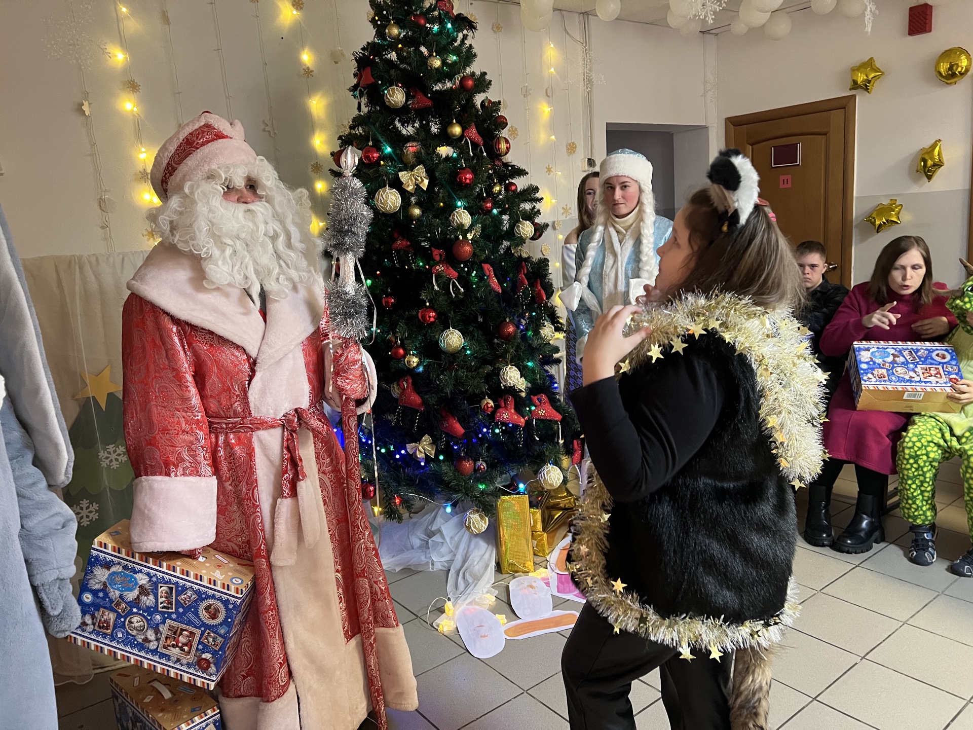 Новогодние утренники в отделении полустационарного социального обслуживания №1 для детей-инвалидов и детей с ограниченными возможностями здоровья подошли к концу, оставив яркие впечатления и массу положительных эмоций. Праздничный марафон завершился красочным костюмированным представлением для детей старшего возраста. В нём приняли участие любимые персонажи: Баба-яга, Зайчик, Дед Мороз со Снегурочкой в традиционном облике, а также их современные версии.