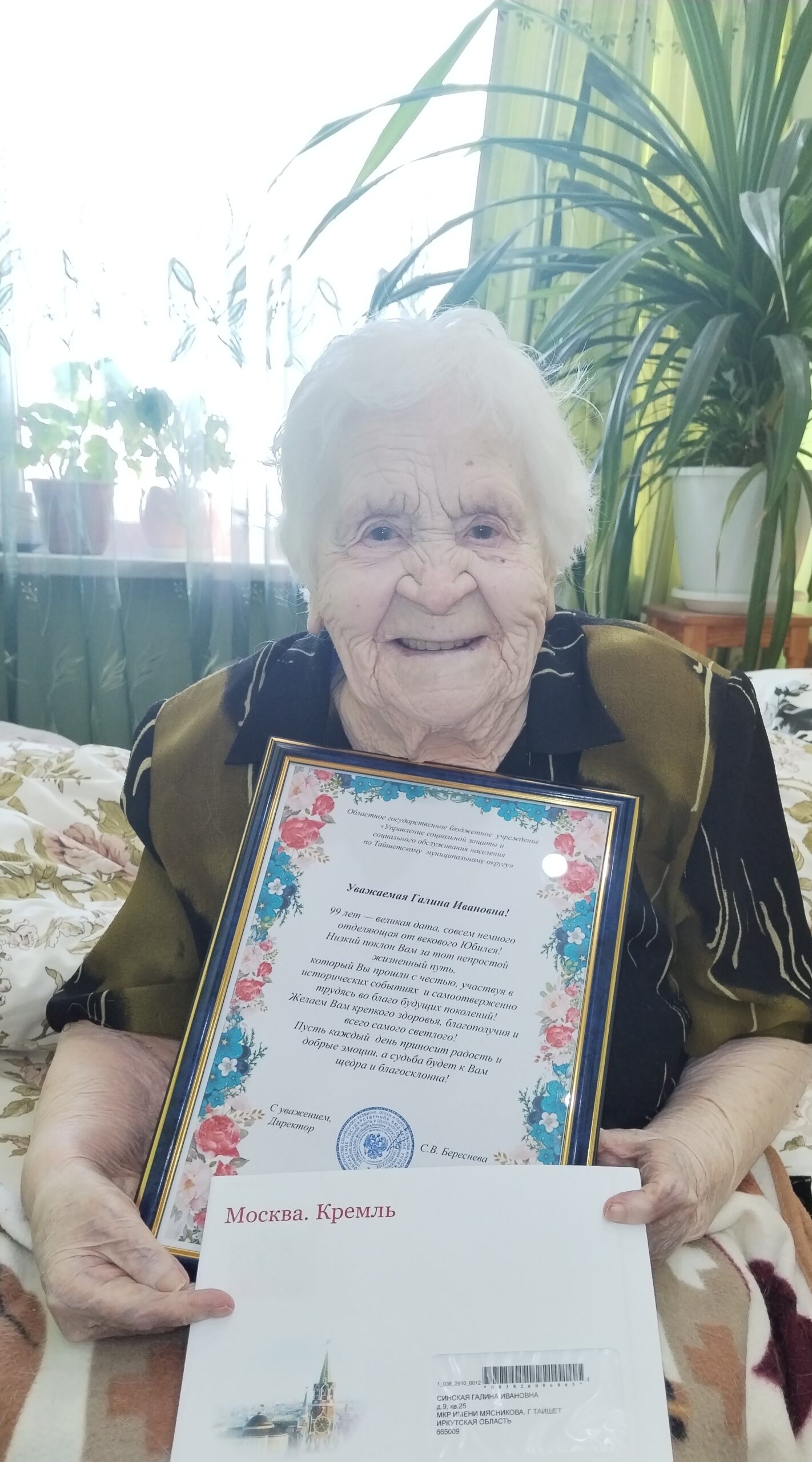 Вручение персонального поздравления Президента Российской Федерации с 99-летием Синской Галине Ивановне