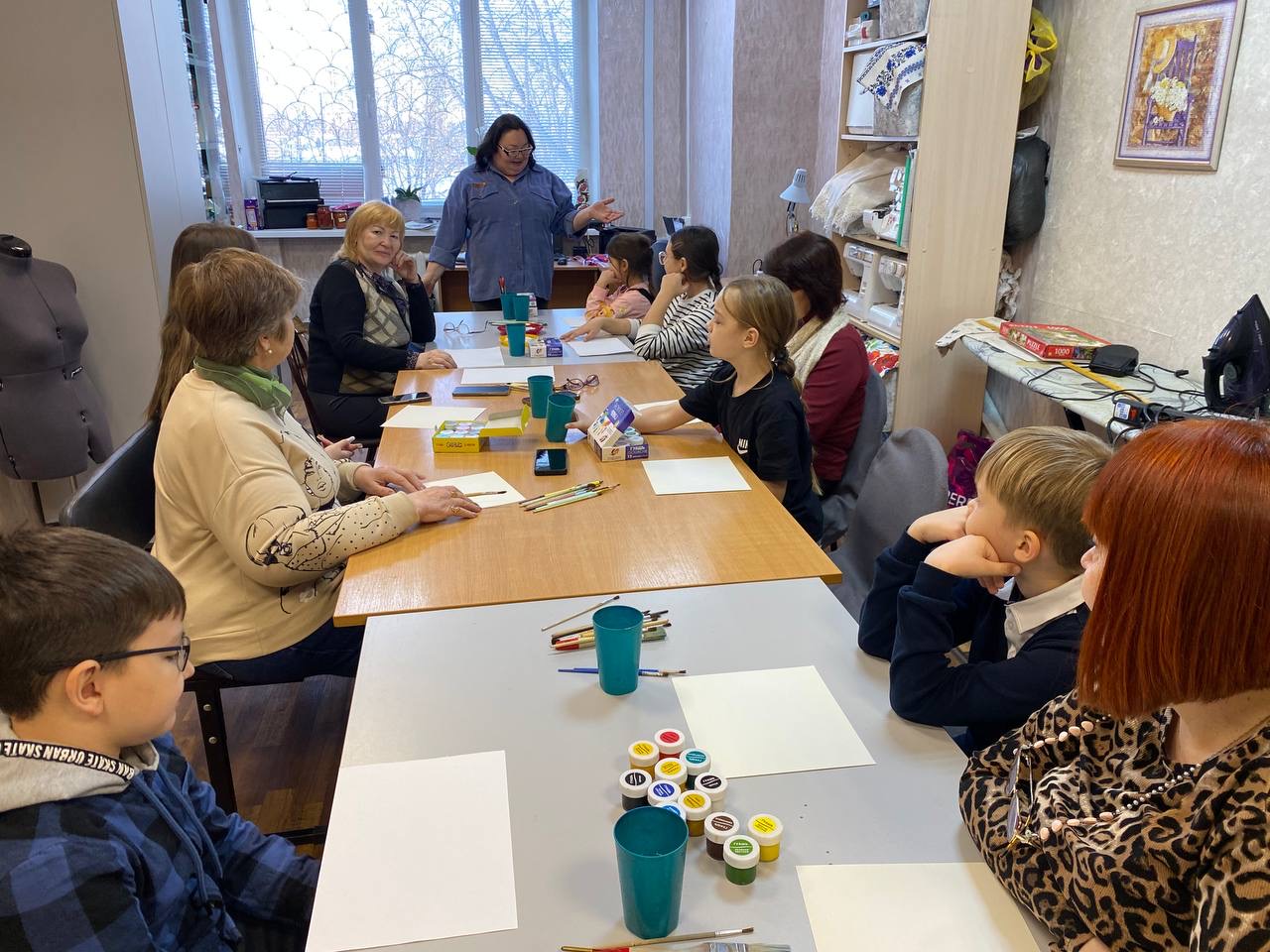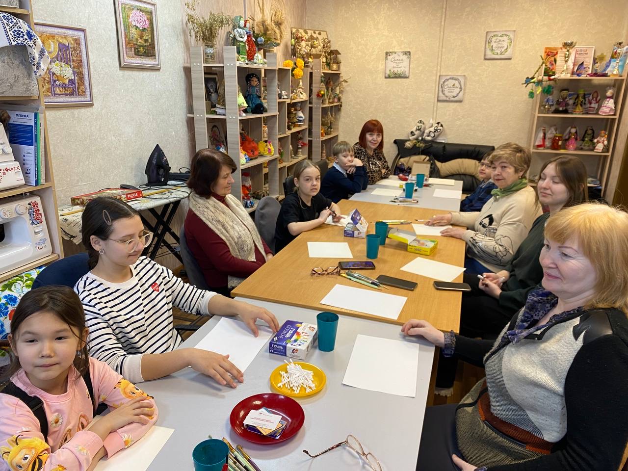 Во время мастер-класса бабушки и внуки познакомились с нетрадиционной правополушарной техникой рисования. В качестве кистей использовались ватные палочки. Бабушки с энтузиазмом осваивали подручные материалы, а внуки с радостью делились знаниями и помогали старшим.