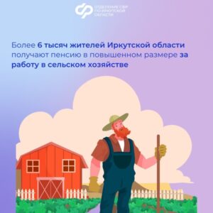 Отделение Социального фонда России по Иркутской области устанавливает повышенную фиксированную выплату к пенсии за работу в сельским хозяйстве 6180 жителям региона. Право на доплату имеют неработающие пенсионеры, которые получают страховую пенсию по старости или инвалидности, проработали не менее 30 лет в сельском хозяйстве и на момент назначения пенсии проживают в сельской местности. Размер доплаты Читать далее…